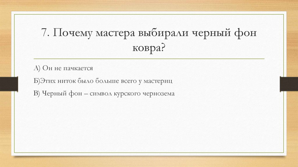 7. Почему мастера выбирали черный фонковра?