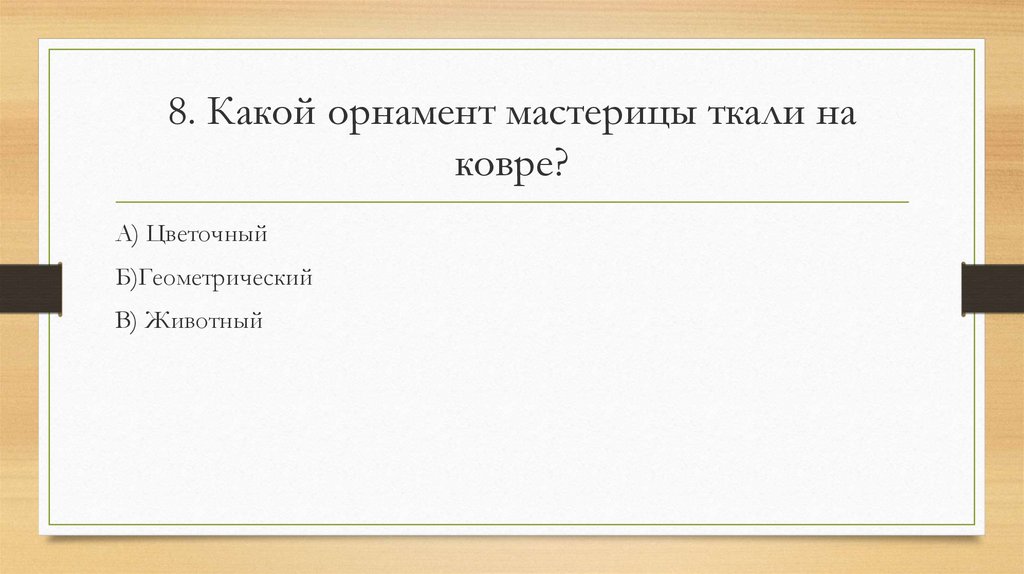 8. Какой орнамент мастерицы ткали наковре?