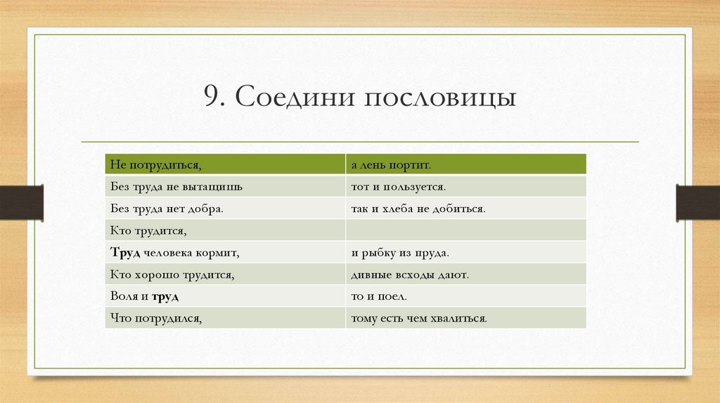 9. Соедини пословицыНе потрудиться,