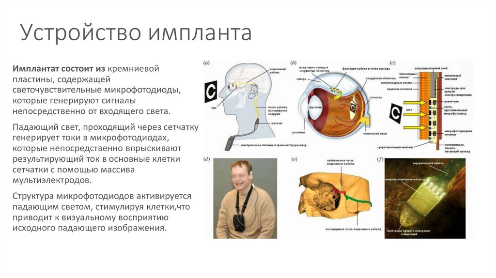 ИсторияПервый имплантируемый стимулятор для восстановления зрения был разработан
