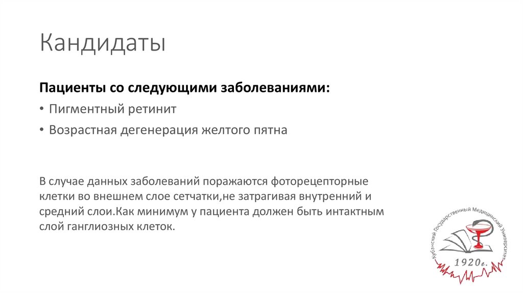 клетки во внешнем слое сетчатки,не затрагивая внутренний и