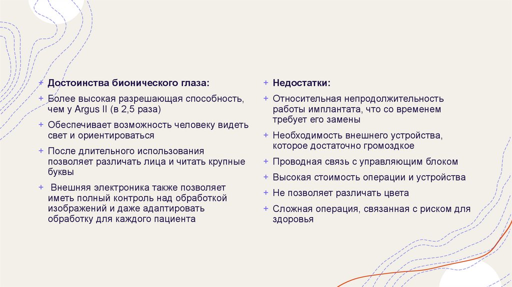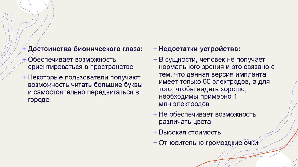 + Достоинства бионического глаза:+ Недостатки: