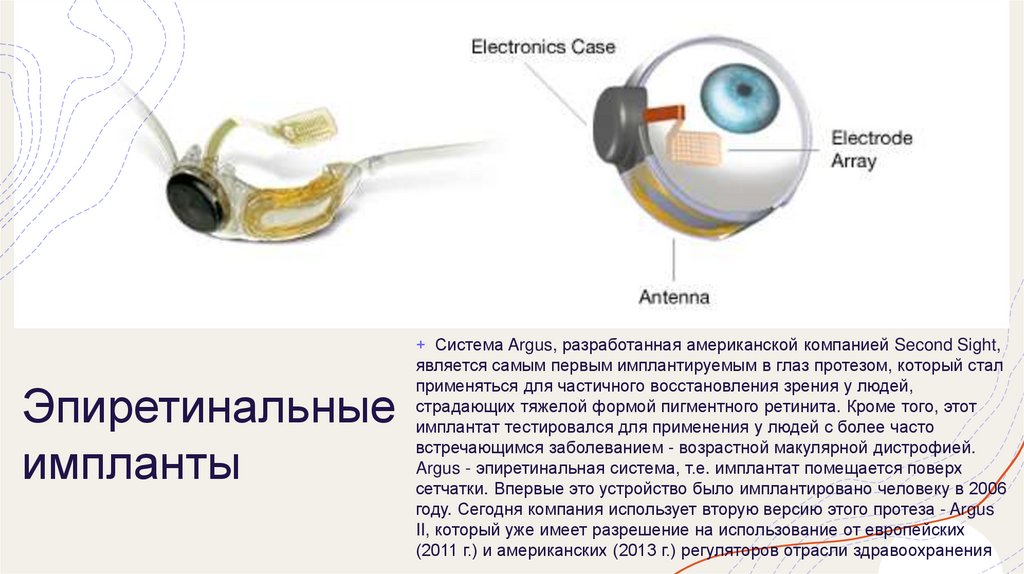 сетчатки. Впервые это устройство было имплантировано человеку в 2006