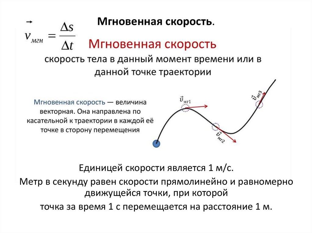 Мгновенная скорость.Единицей скорости является 1 м/с.