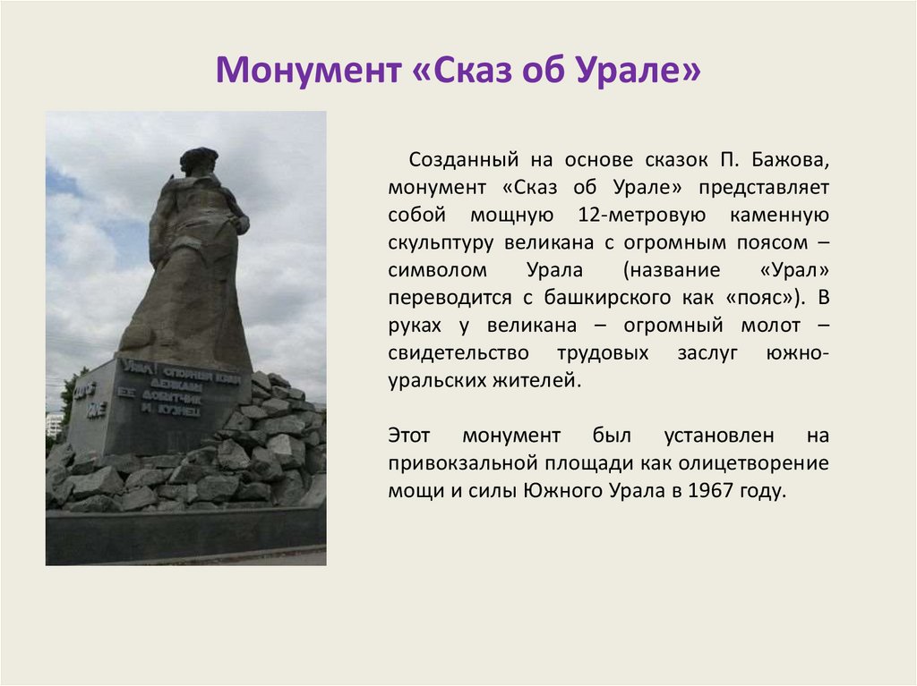 монумент «Сказ об Урале» представляет