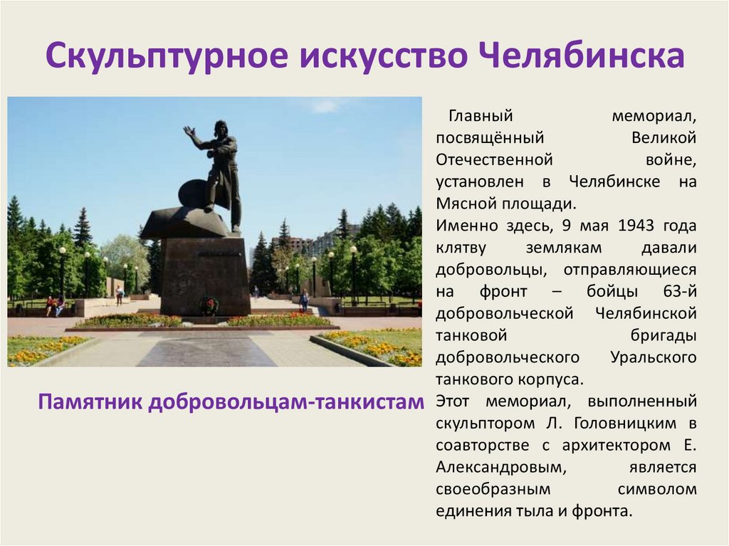 Скульптурное искусство ЧелябинскаПамятник добровольцам-танкистам