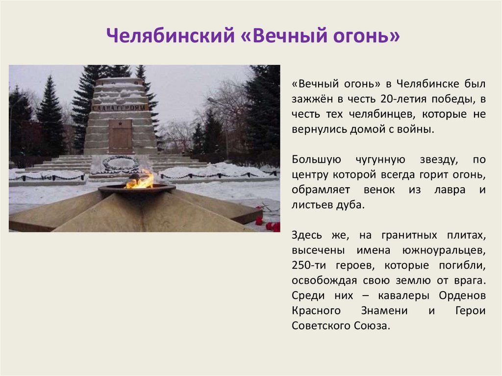 Челябинский «Вечный огонь»«Вечный огонь» в Челябинске был