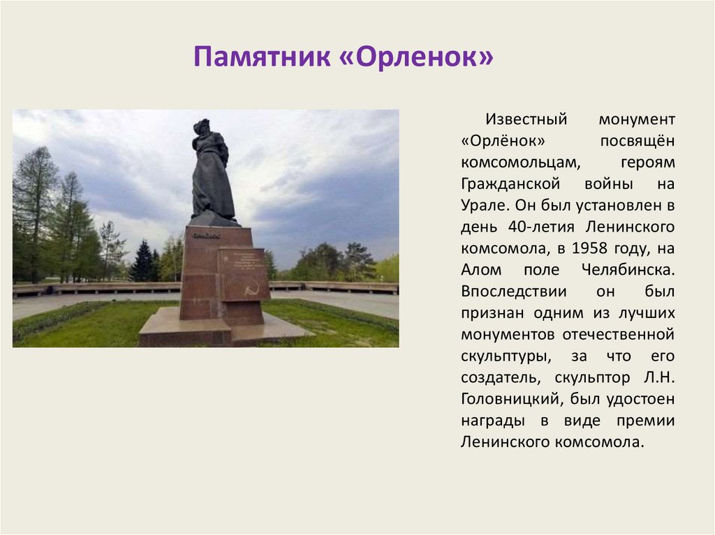 Памятник «Орленок»Известный