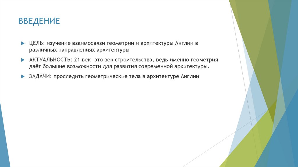 ВВЕДЕНИЕЦЕЛЬ: изучение взаимосвязи геометрии и архитектуры Англии в