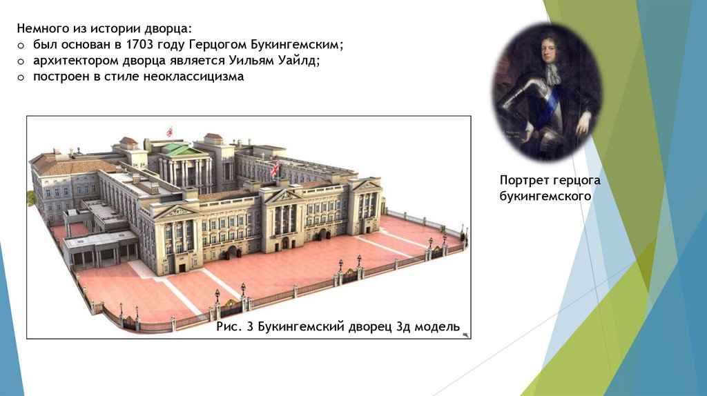 Немного из истории дворца:o был основан в 1703 году Герцогом Букингемским;