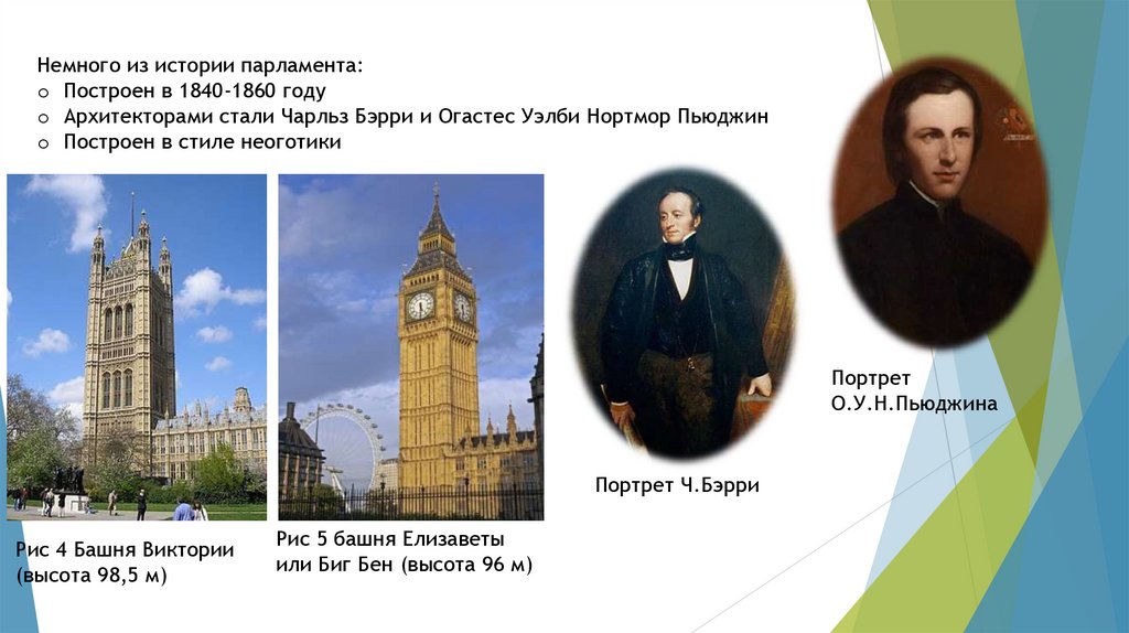 o Архитекторами стали Чарльз Бэрри и Огастес Уэлби Нортмор Пьюджин
