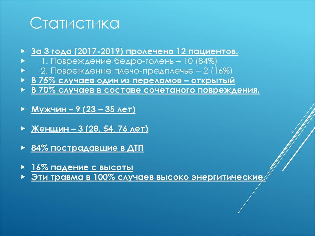 Статистика▶ За 3 года (2017-2019) пролечено 12 пациентов.