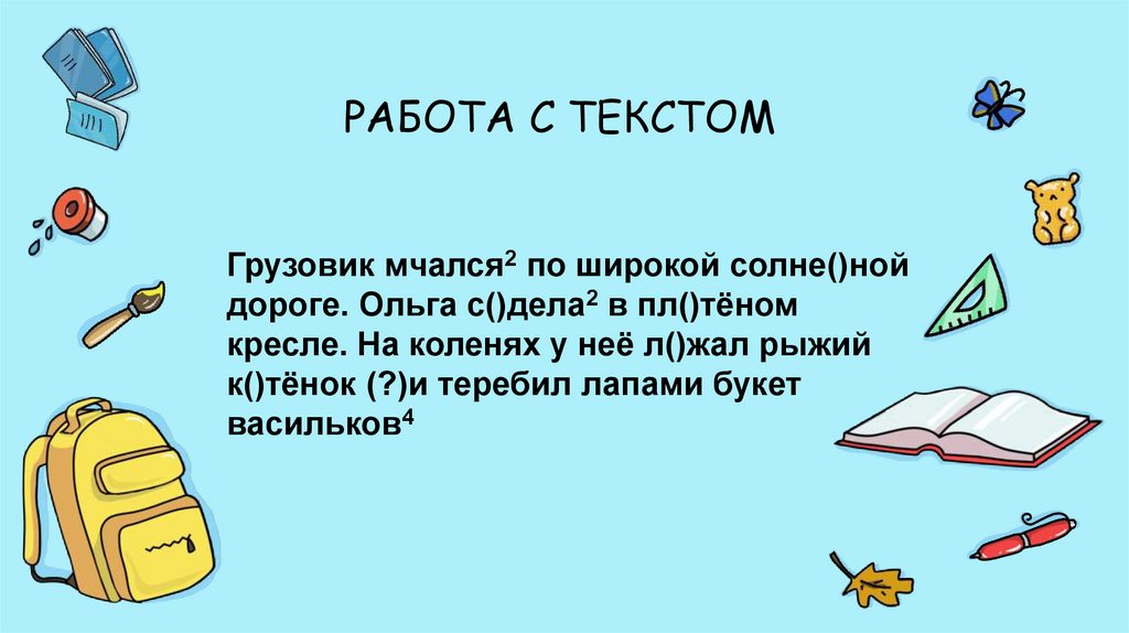 РАБОТА С ТЕКСТОМГрузовик мчался2 по широкой солне()ной