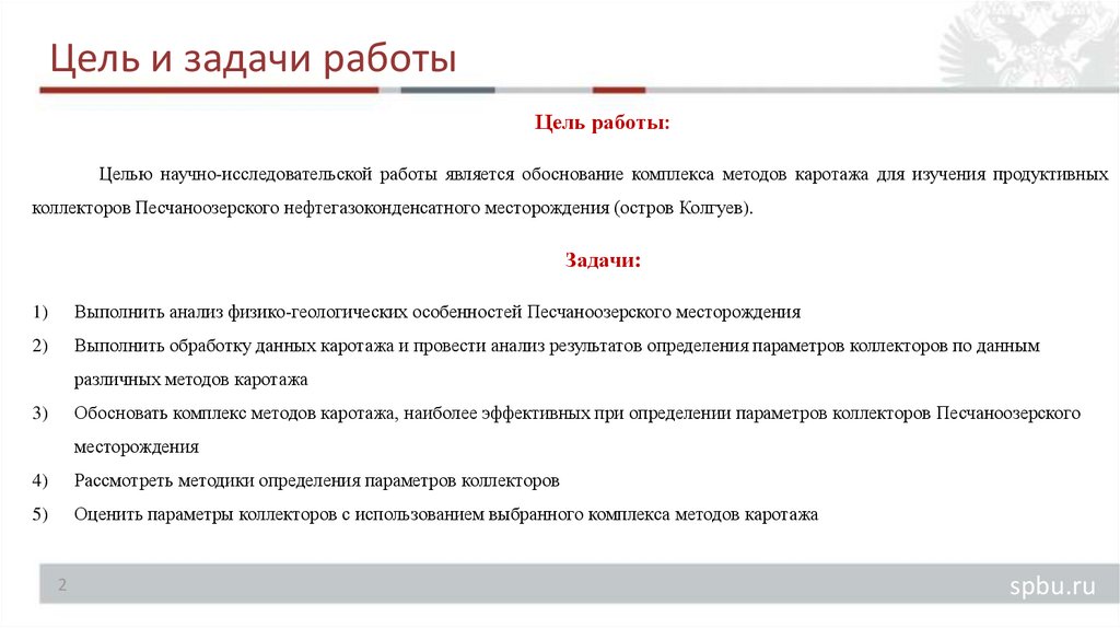 Целью научно-исследовательской работы является обоснование комплекса методов каротажа для изучения продуктивных