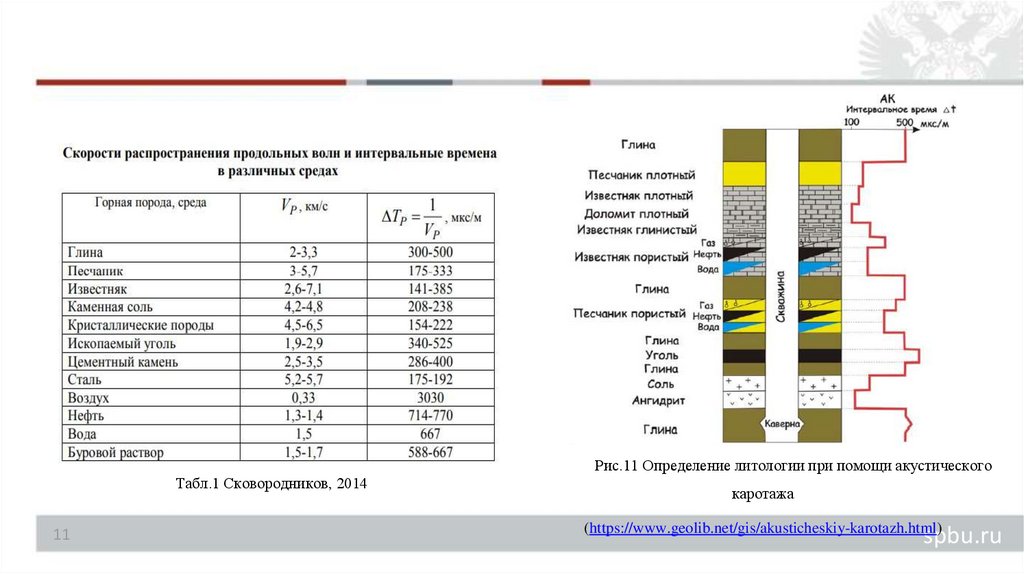Рис.11 Определение литологии при помощи акустическогоТабл.1 Сковородников, 2014