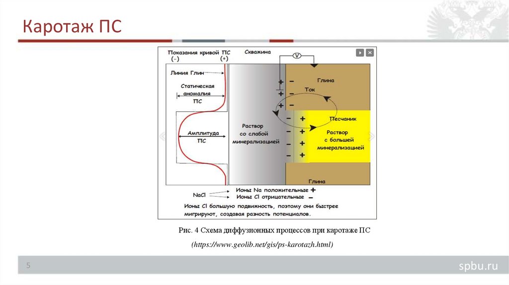 Каротаж ПСРис. 4 Схема диффузионных процессов при каротаже ПС