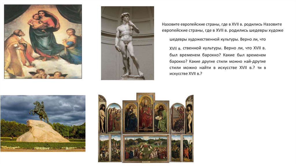 Назовите европейские страны, где в XVII в. родились Назовитеевропейские страны, где в XVII в. родились шедевры художе