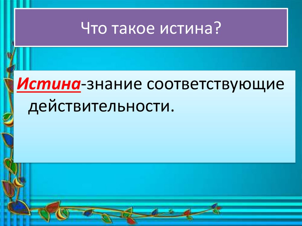 Что такое истина?Истина-знание соответствующие