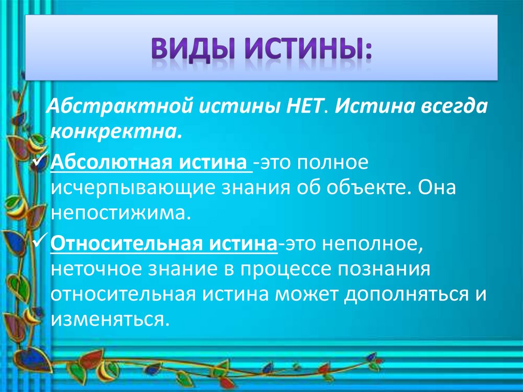 Абстрактной истины НЕТ. Истина всегдаконкректна.