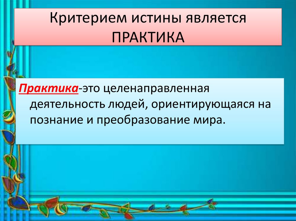 Критерием истины являетсяПРАКТИКА