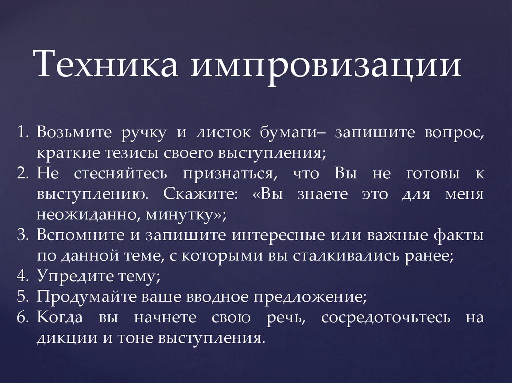 Техника импровизации. Импровизированная речь