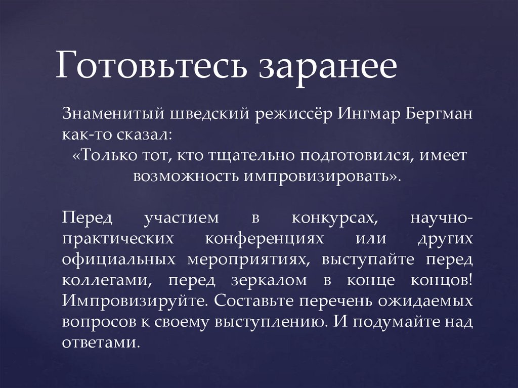 Готовьтесь заранееЗнаменитый шведский режиссёр Ингмар Бергман