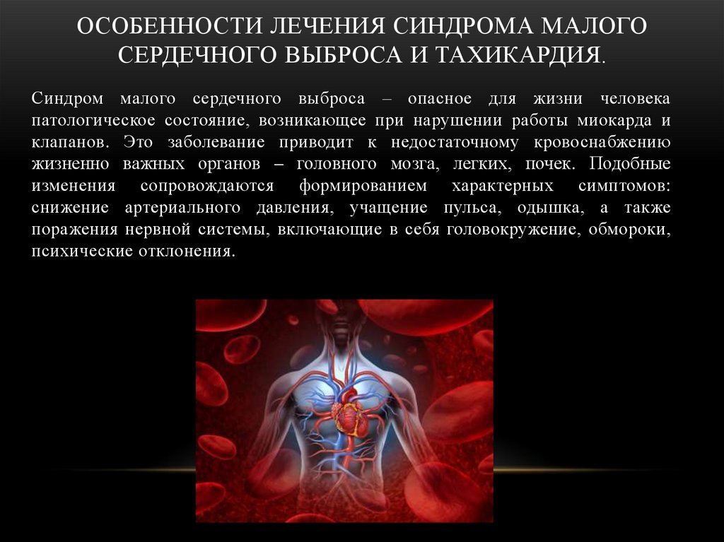снижением артериального давления, а также такими симптомами, как одышка,