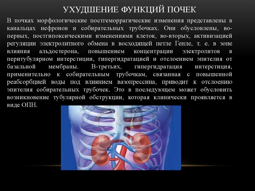 канальцах нефронов и собирательных трубочках. Они обусловлены, вопервых, постгипоксическими изменениями клеток, во-вторых, активизацией