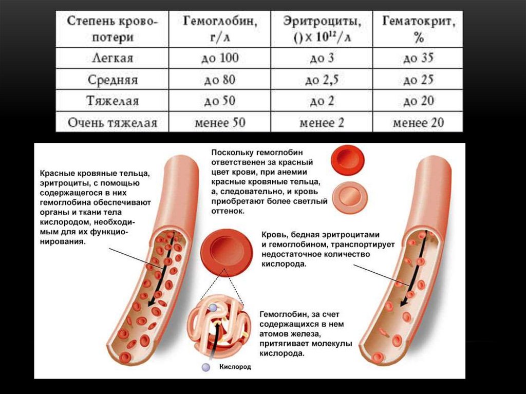зависимости от того, какое количество крови потерял больной и в каком