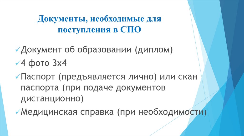 Документы, необходимые дляпоступления в СПО