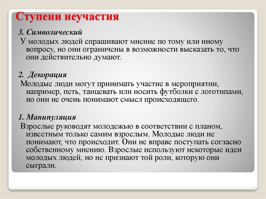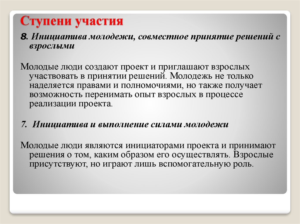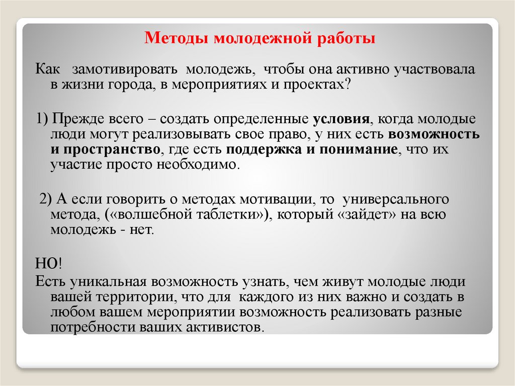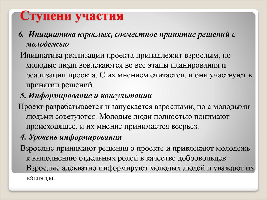 Молодежное участие возможно, когда для этогосозданы определенные условия.