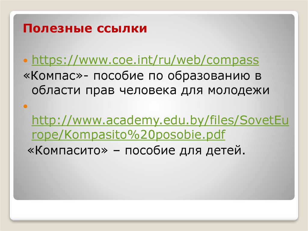 Полезные ссылкиhttps://www.coe.int/ru/web/compass