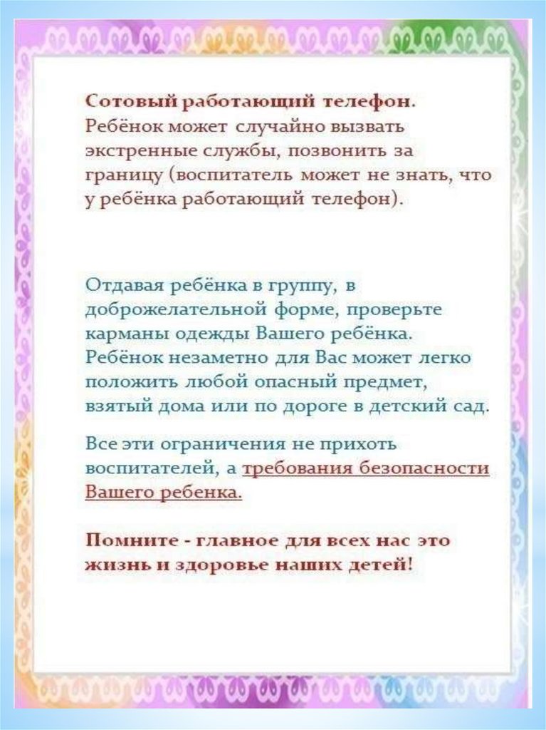 Памятка родителям дошкольников. Что можно и что нельзя приносить с собой в детский сад