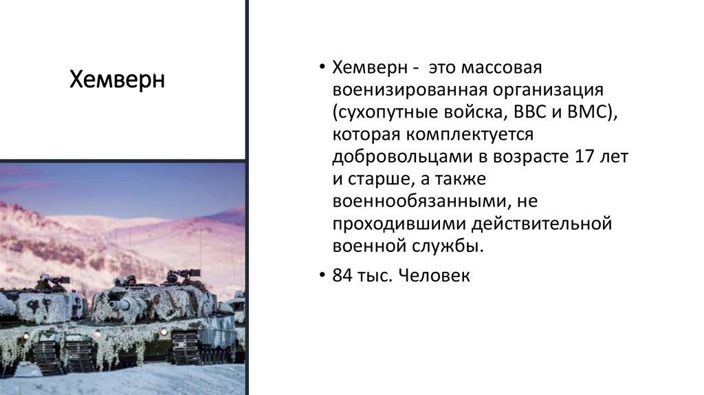 Задачи (Хемверн)• охрана и оборона военных объектов, транспортных