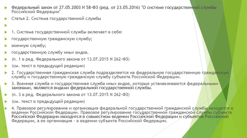 Федеральный закон от 27.05.2003 N 58-ФЗ (ред. от 23.05.2016) "О системе государственной службыРоссийской Федерации"
