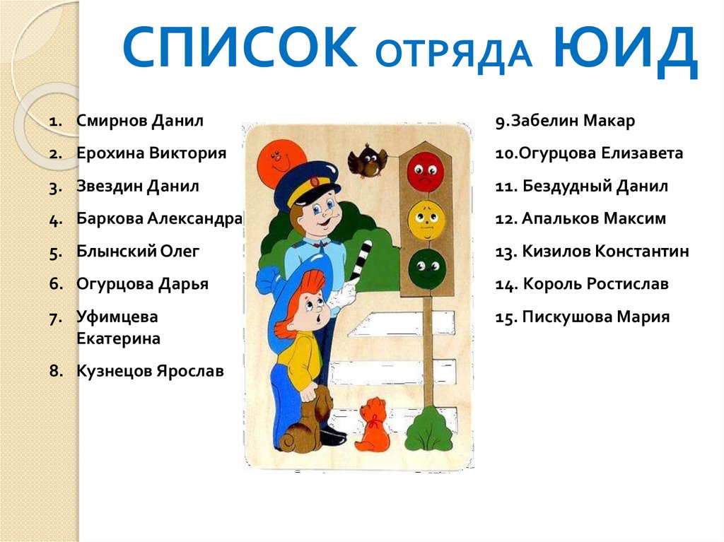СПИСОК ОТРЯДА ЮИД1. Смирнов Данил