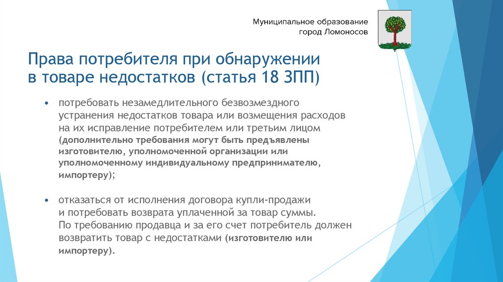 Права потребителя при обнаружениив товаре недостатков (статья 18 ЗПП)