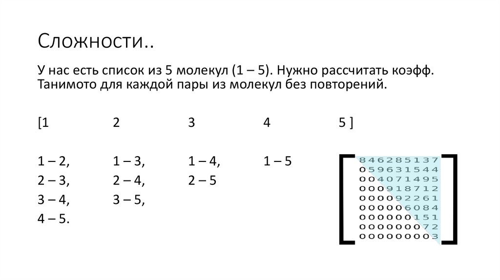 Сложности..У нас есть список из 5 молекул (1 – 5). Нужно рассчитать коэфф.