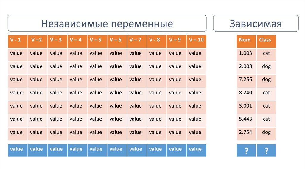 Независимые переменныеЗависимая