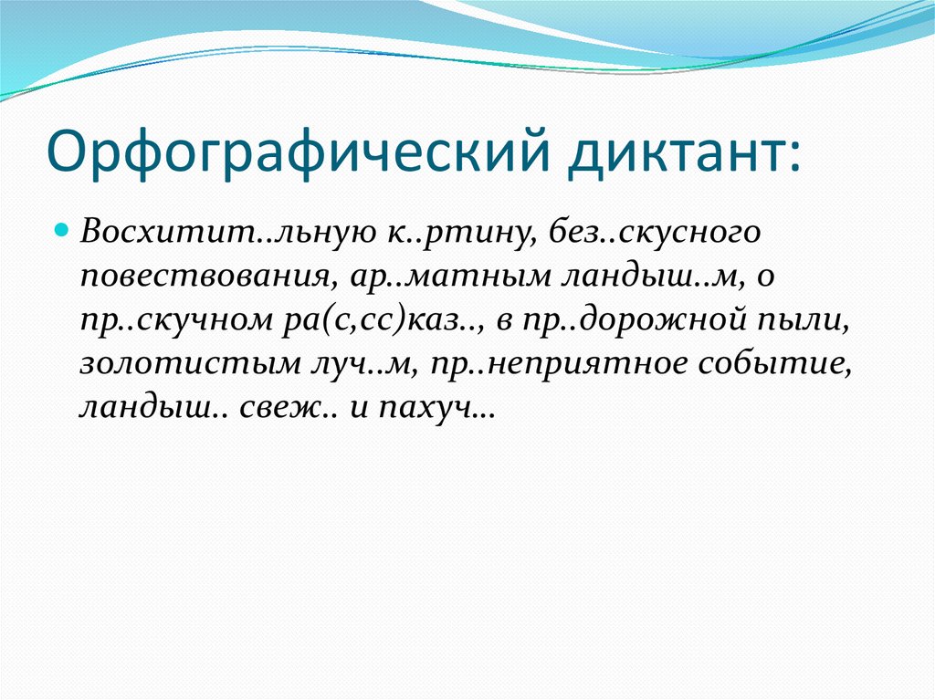 Орфографический диктант:Восхитит..льную к..ртину, без..скусного