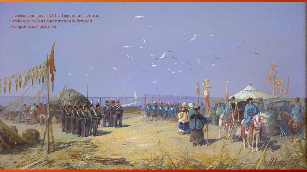 Первая половина XVIII в. Церемония встречикитайского амбаня смотрителем войсковой