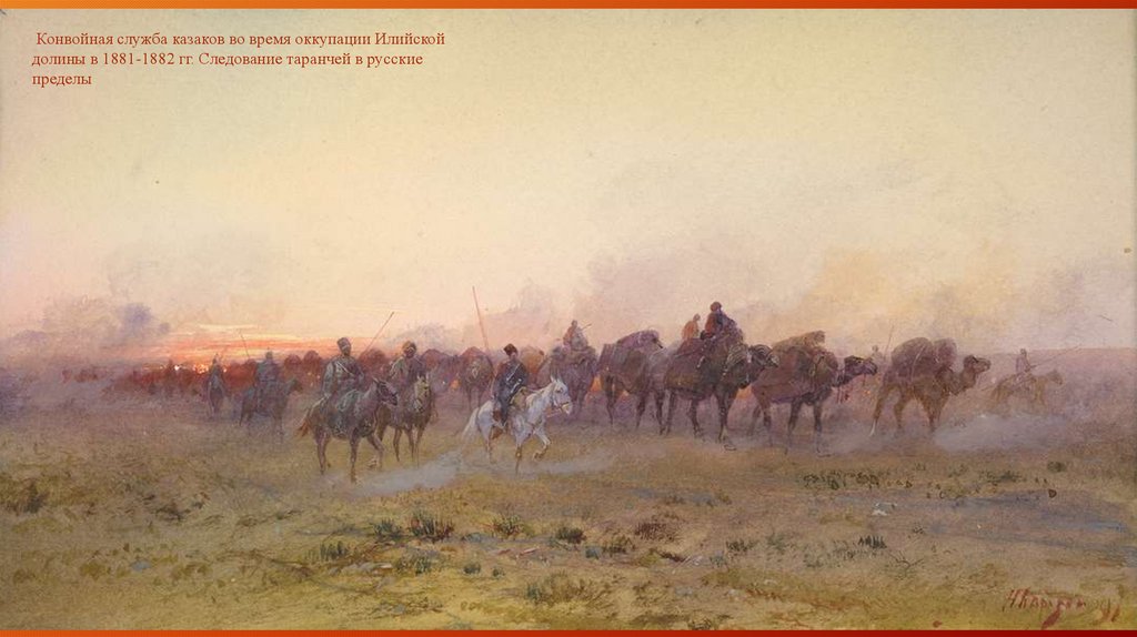 Конвойная служба казаков во время оккупации Илийскойдолины в 1881-1882 гг. Следование таранчей в русские