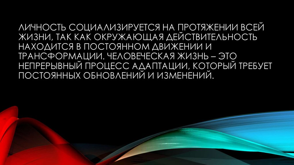 ЛИЧНОСТЬ СОЦИАЛИЗИРУЕТСЯ НА ПРОТЯЖЕНИИ ВСЕЙЖИЗНИ, ТАК КАК ОКРУЖАЮЩАЯ ДЕЙСТВИТЕЛЬНОСТЬ