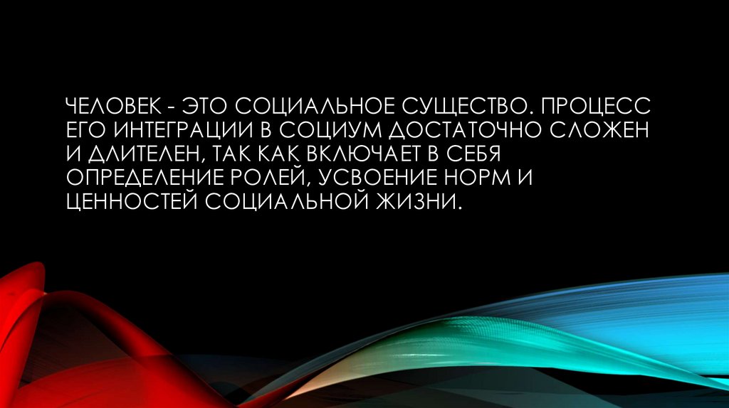 ЧЕЛОВЕК - ЭТО СОЦИАЛЬНОЕ СУЩЕСТВО. ПРОЦЕССЕГО ИНТЕГРАЦИИ В СОЦИУМ ДОСТАТОЧНО СЛОЖЕН