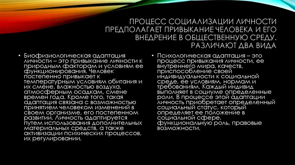 процесс привыкания личности, ее