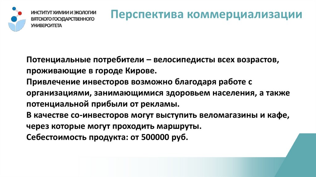 Перспектива коммерциализацииПотенциальные потребители – велосипедисты всех возрастов,