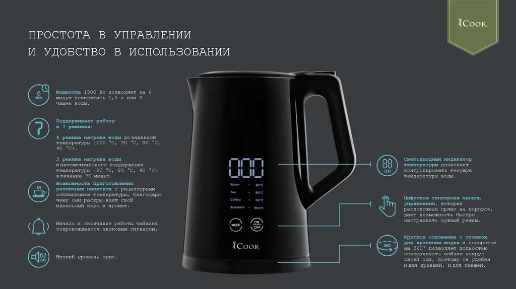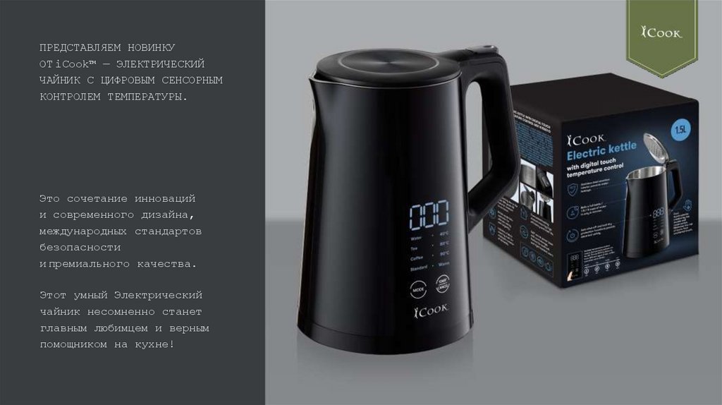 Электрический чайник с цифровым сенсорным контролем температуры от iCook™