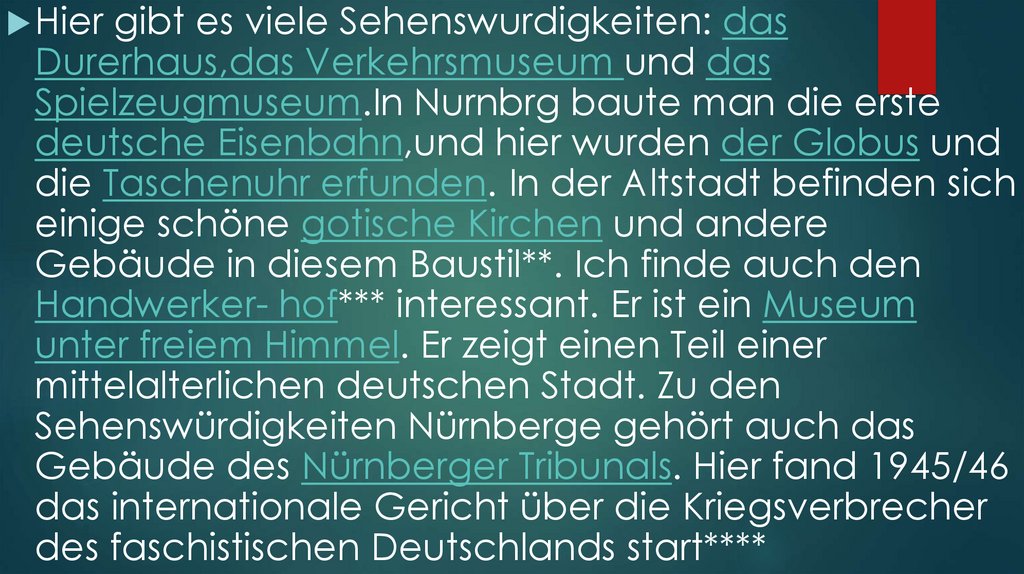 HEUTZUTAGE SIND IN NURNBERG DIE VERGANGENHEITUND DIE GEGENWART HARMONISCH WEREINIGT.