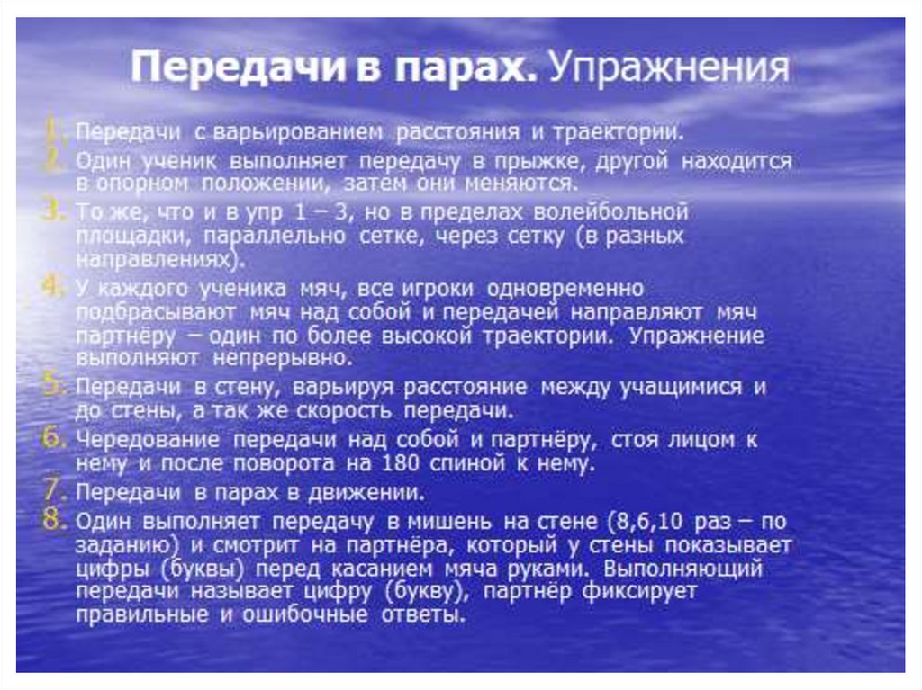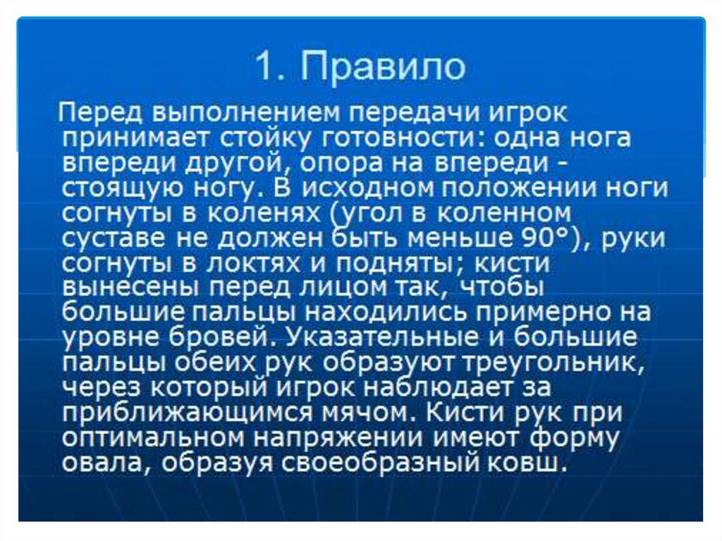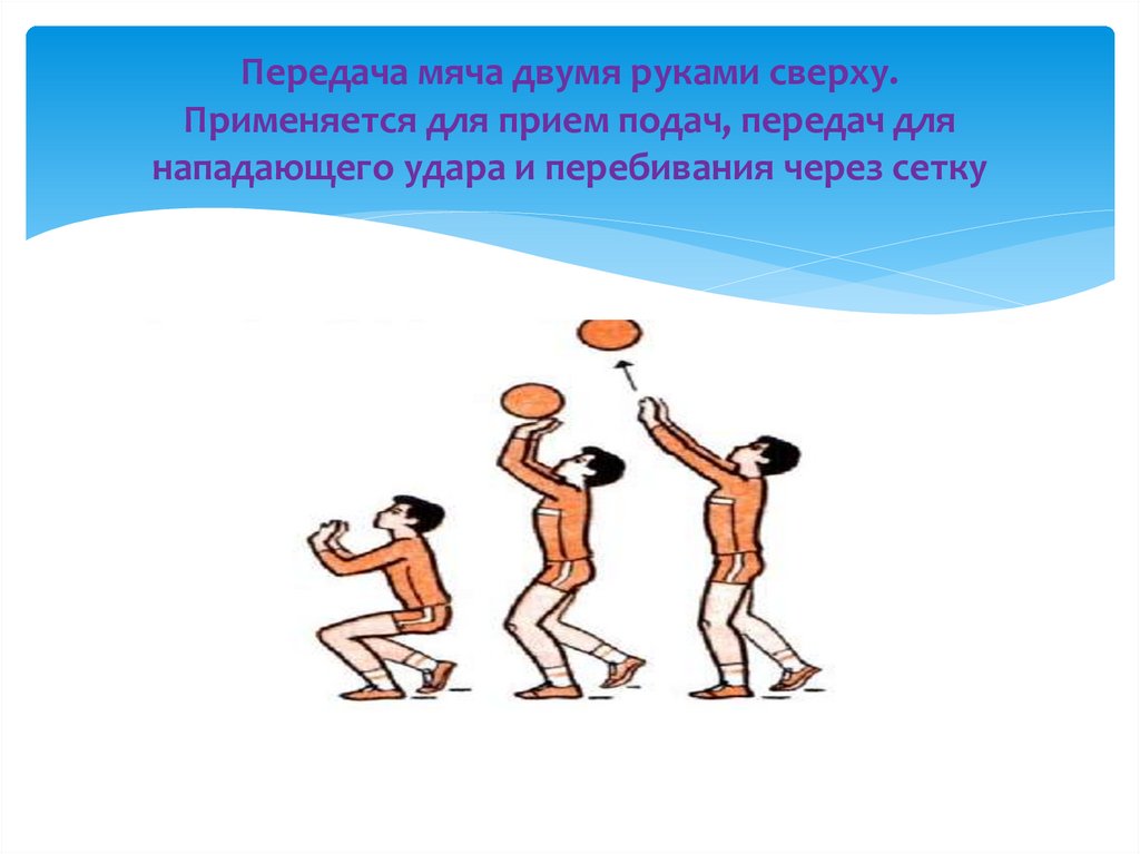 Передача мяча двумя руками сверху.Применяется для прием подач, передач для