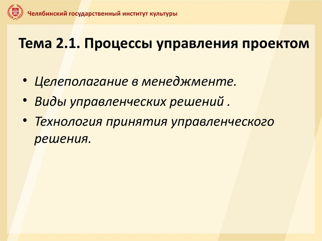 Тема 2.1. Процессы управления проектом• Целеполагание в менеджменте.